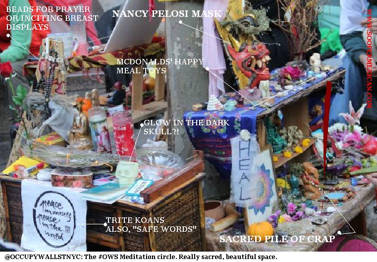The cop-car-crapping degenerate occupy account @OccupyWallStNYC posted this pic of their “sacred” beautiful medication space. I elucidate what all the religious artifacts are..