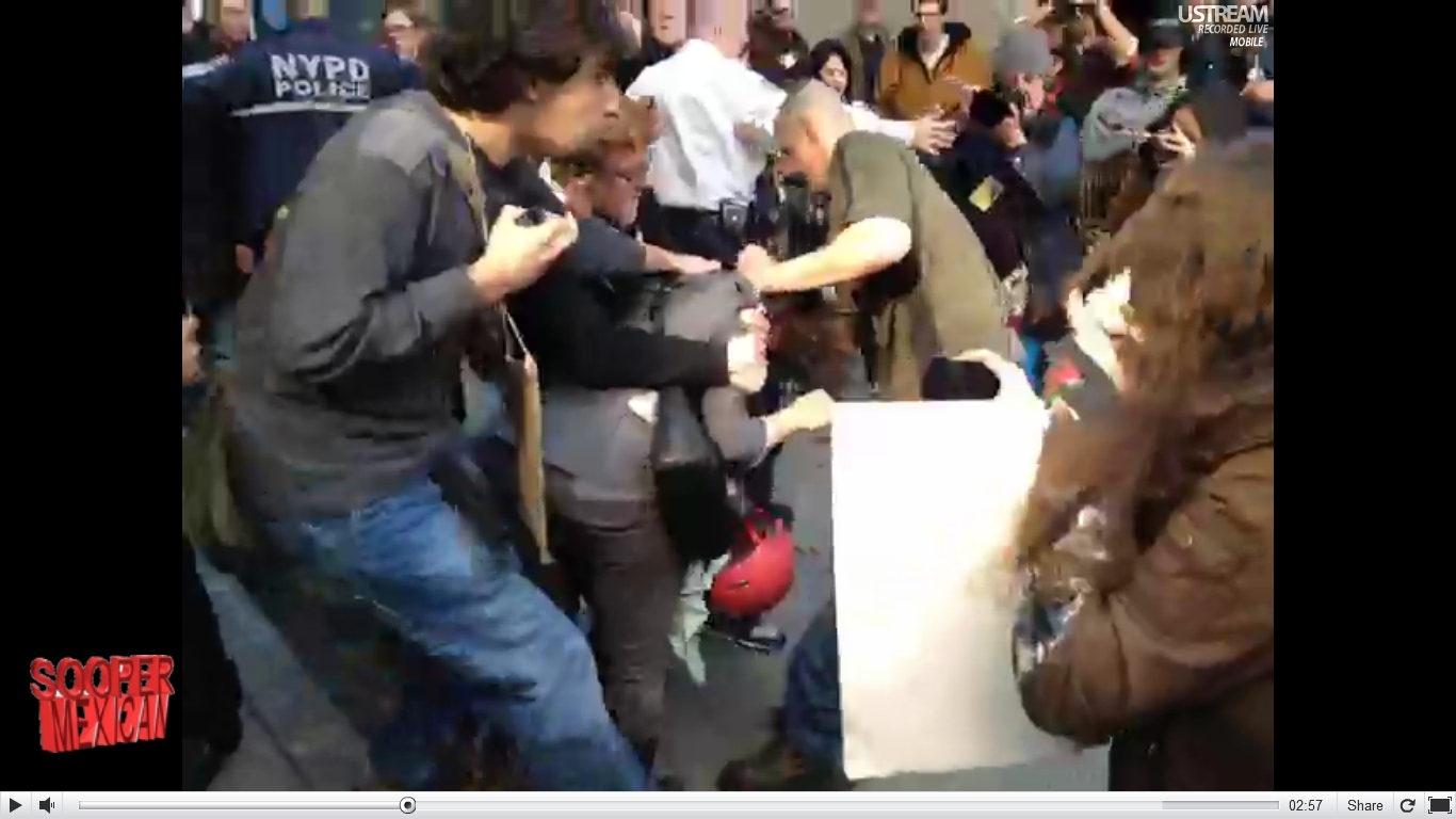 They walked the suspect away with an enormous crowd of occupiers screaming at them, and getting in the way of the arrest..
